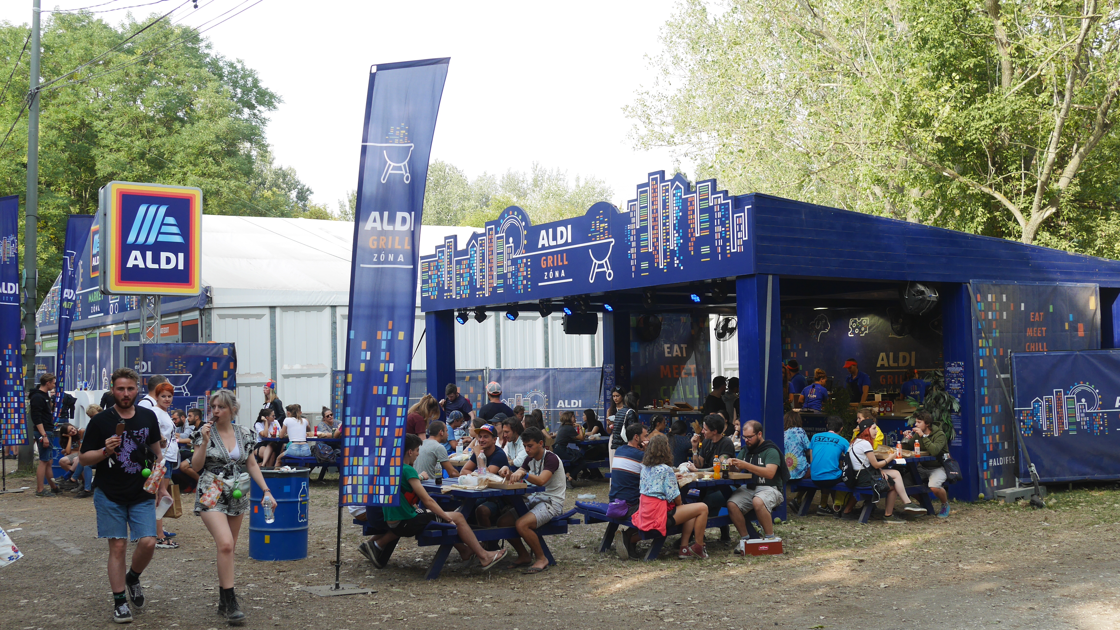 L’iniziativa di marketing esperienziale più interessante del Sziget è stata però quella offerta da Aldi. Il discount tedesco aveva allestito il punto vendita ufficiale del festival ma non si limitava a vendere i suoi prodotti come in qualsiasi altra location. Di fianco al supermercato, infatti, l’azienda aveva allestito l’Aldi Grill uno spazio nel quale metteva gratuitamente a disposizione dei clienti uno staff di cuochi pronti a cucinare i prodotti appena acquistati.