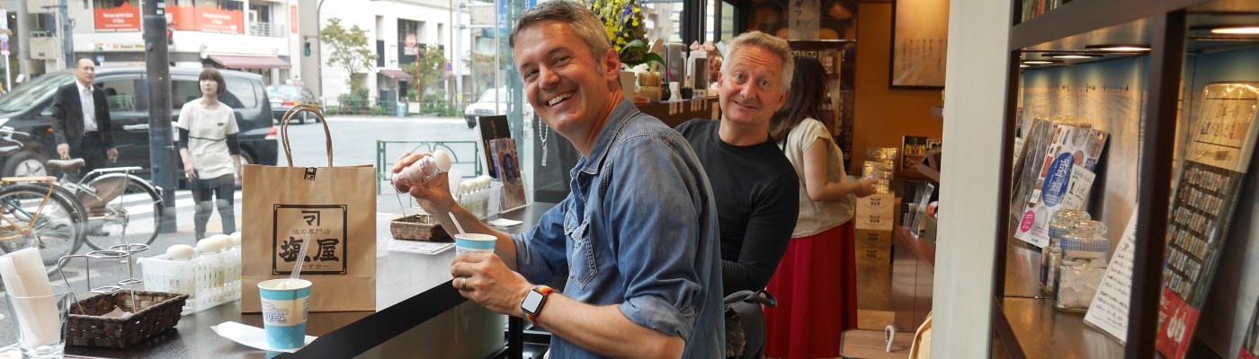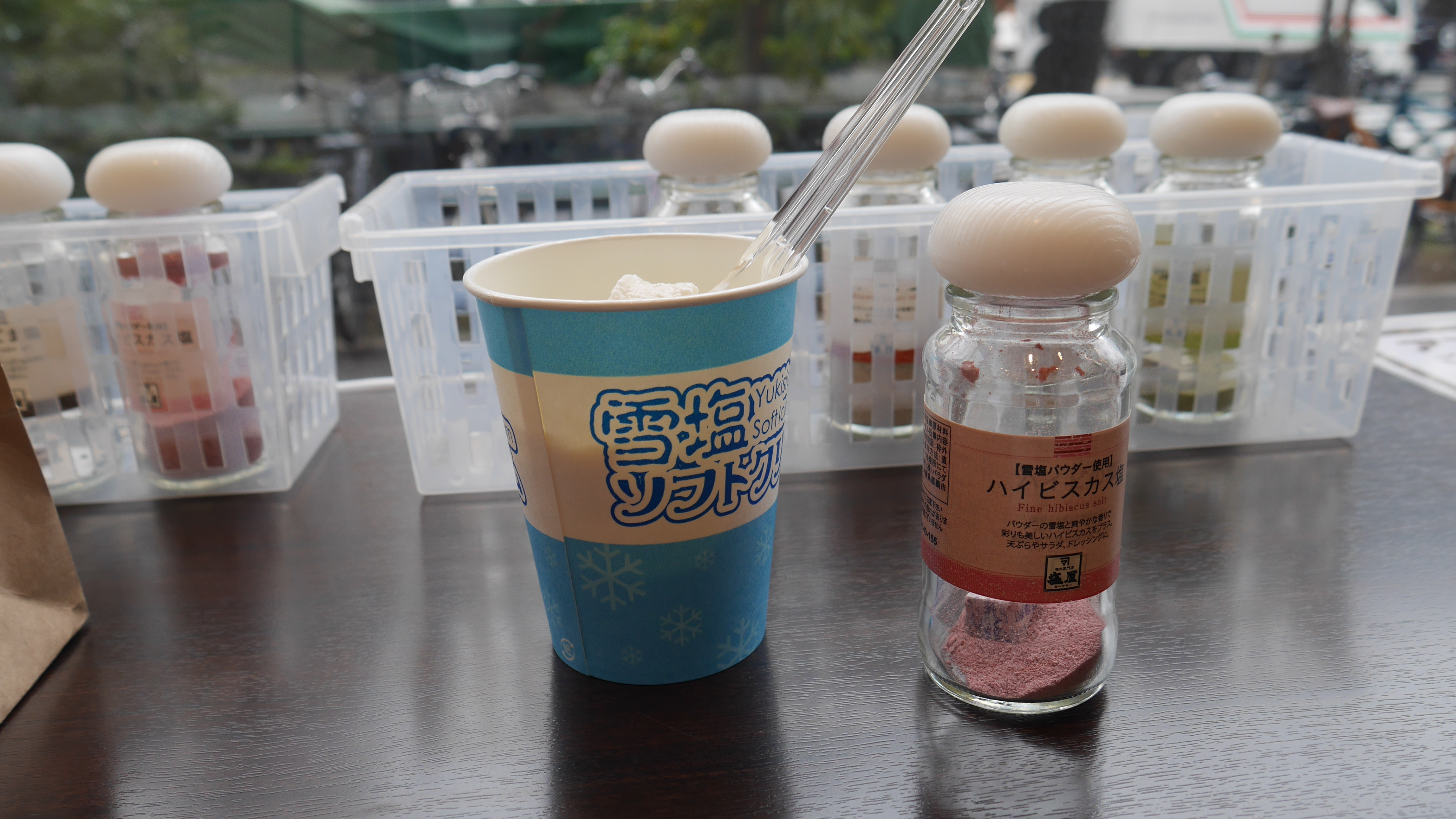 Per godersi fino in fondo questa retail experience c’è poi la possibilità di gustare in negozio il gelato al sale. Qui il sale è presente come base nel gelato, ma la parte più interessante della degustazione è la possibilità di aggiungere sul gelato un sale a scelta tra una decina di opzioni disponibili. Dopo averli provati tutti sono incerto se il mio dal preferito sul gelato sia il quello all’hibiscus o il famoso snow salt di Okinawa.