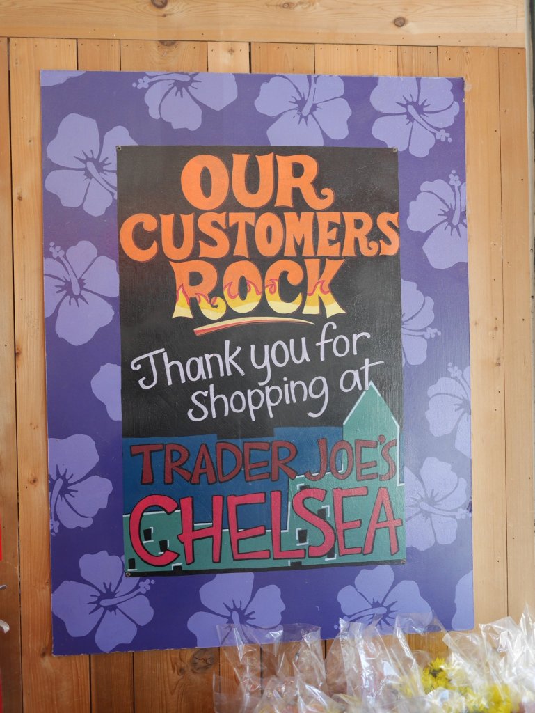 L’offerta non è però quella essenziale del tipico discount, focalizzato sui prodotti basici con prezzi bassi, ma assomiglia piuttosto a quella di un gourmet store. L’idea di base è infatti quella di offrire a clienti istruiti, curiosi e abituati a confrontarsi con altre culture, la possibilità di assaggiare specialità di paesi diversi (e non mancano le specialità italiane proposte con la private label Trader Giotto’s …). Si potrebbe insomma definire Trader Joe’s quasi un Eataly low cost, anche per quel modo molto “farinettiano” di raccontare i prodotti sugli scaffali.